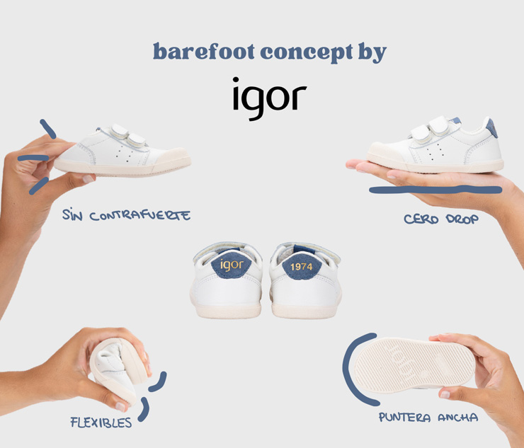 Em 2023, lançámos a nossa primeira colecção barefoot concept by IGOR, com zero drop, sem contraforte, biqueira larga e super flexíveis.