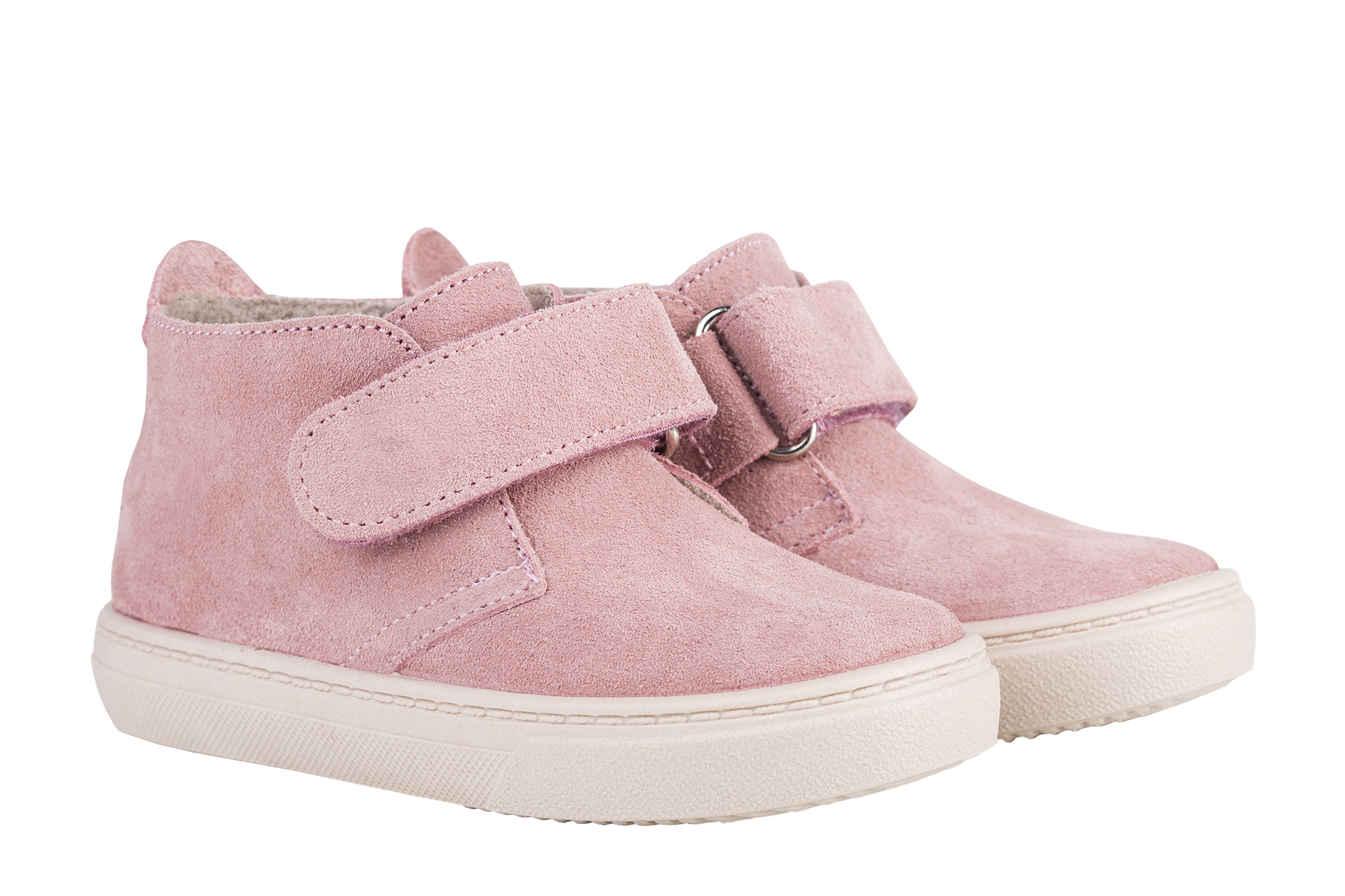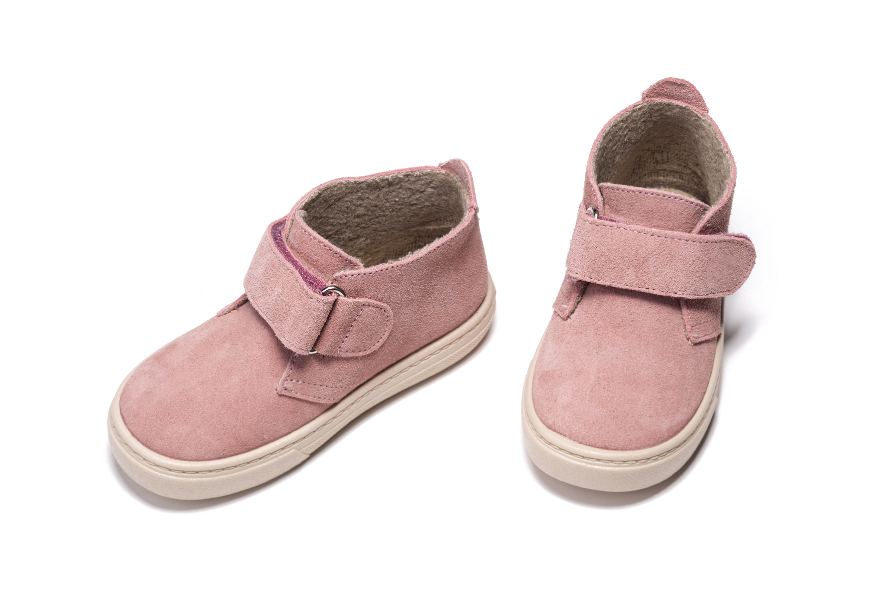 Bottine en daim avec doublure en cuir, dotée dune semelle intérieure en cuir amovible. Semelle sport couleur crème. Fermeture velcro pour un meilleur ajustement et